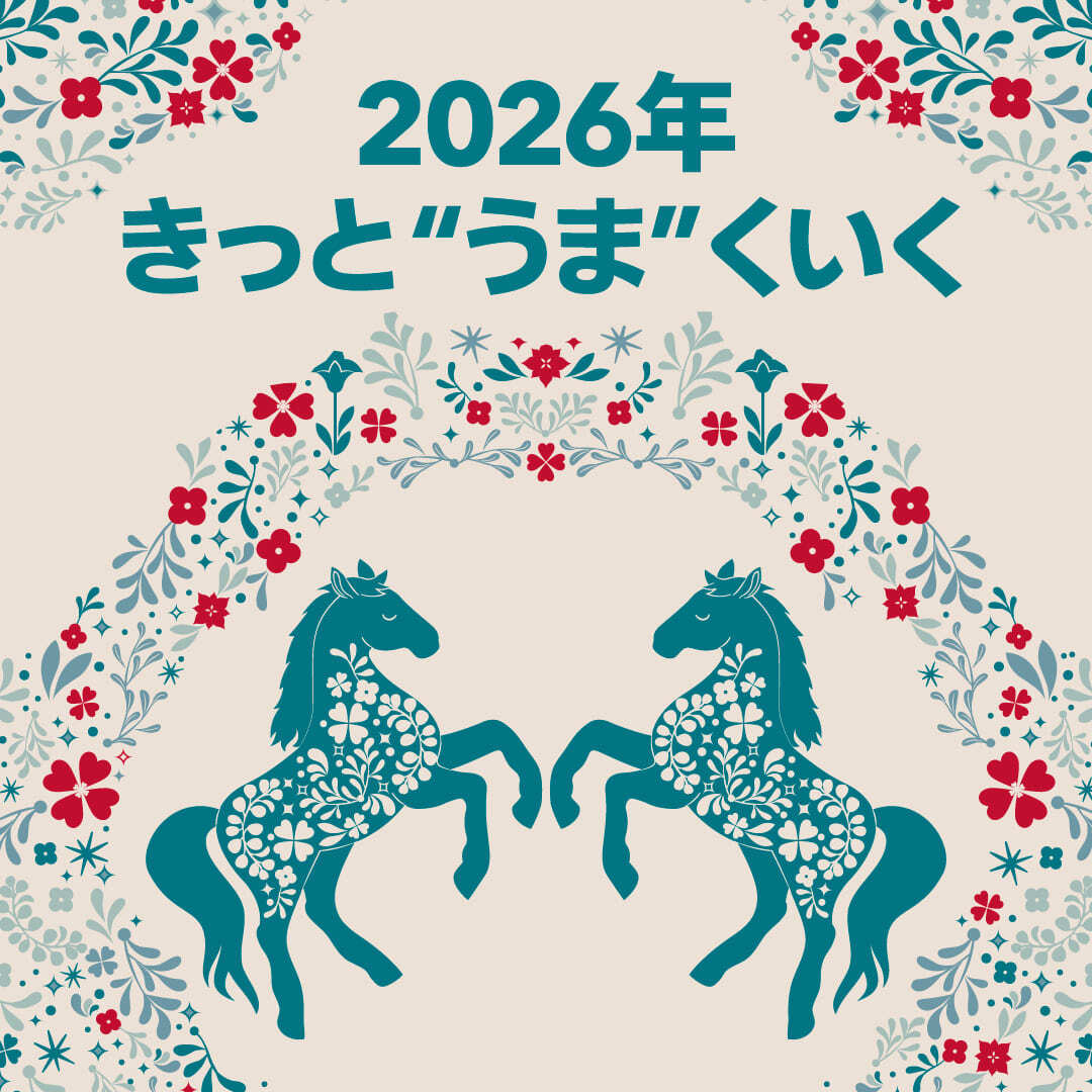 前進・勝利・活力等を象徴すると言われる馬。「きっと“うま”くいく」なんて願掛けすれば、なんだか素敵な一年になりそう。