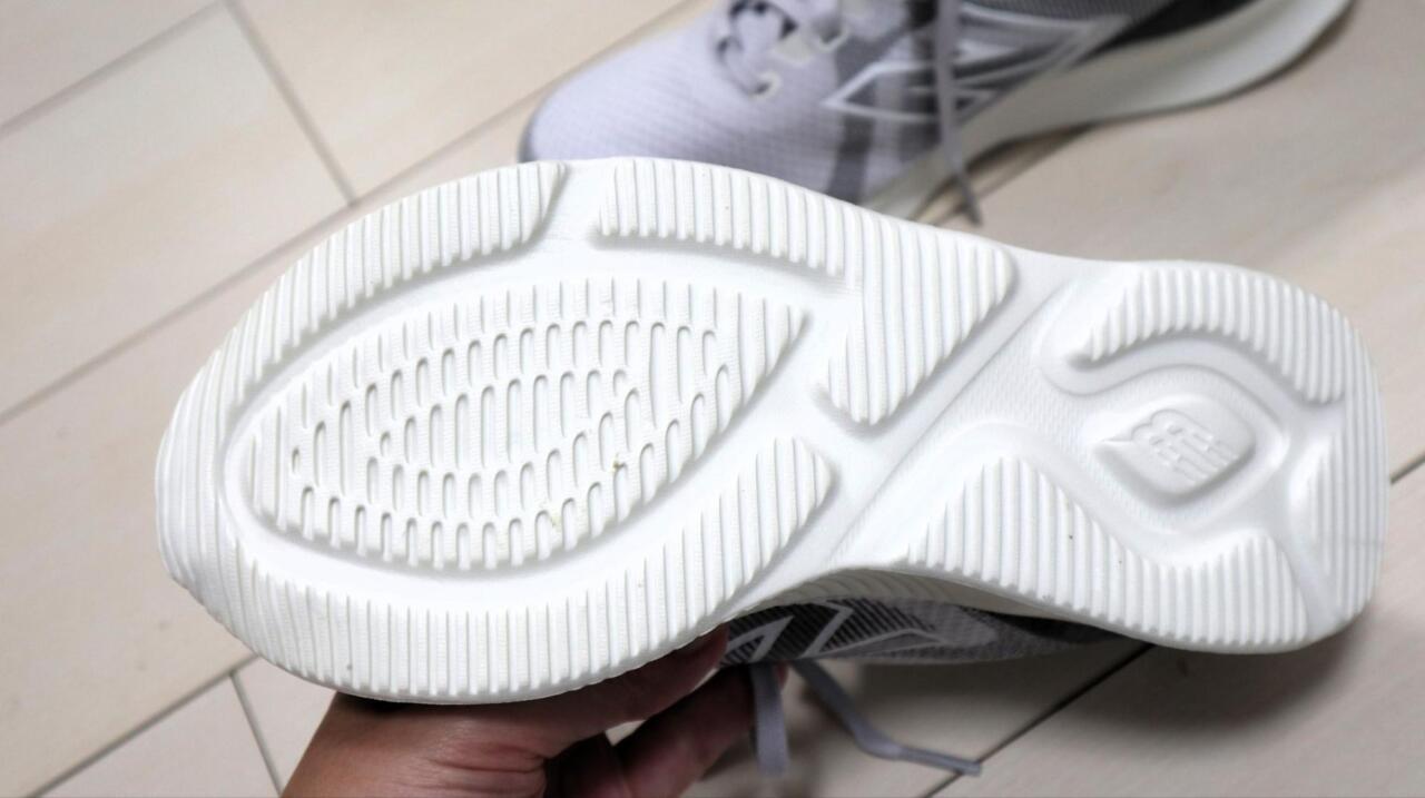 【ニューバランス ランニングシューズ E430】ソールの裏は一色。それほどゴツゴツしておらず、クセは少なめです