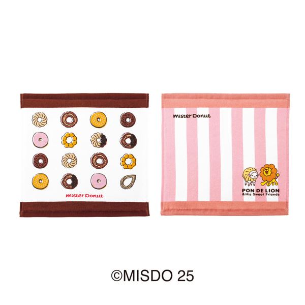 ポン・デ・ライオンとフレンチウーラーがかわいいストライプ柄と、人気のドーナツがデザインされたドーナツ柄のハンドタオルの2枚セットです。