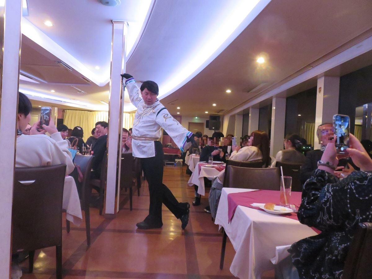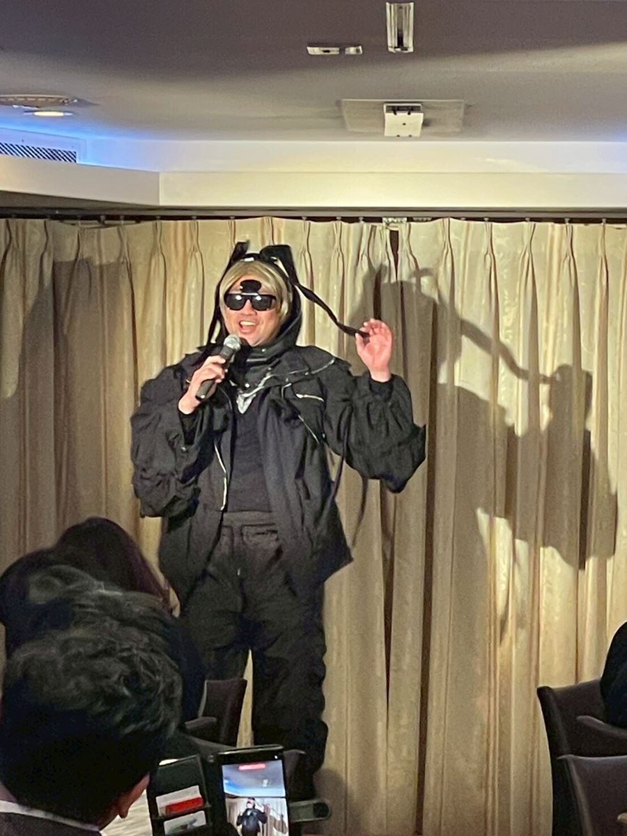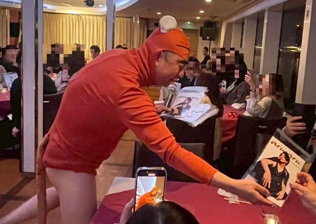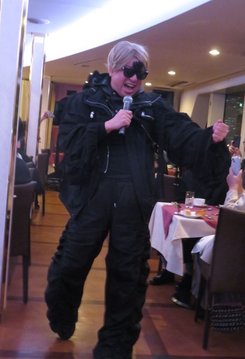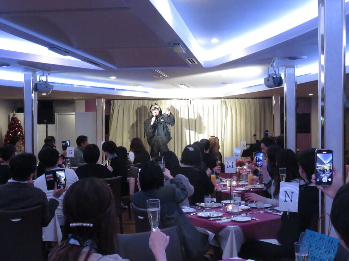 参加者たちは、ディナークルーズにふさわしくラグジュアリーな装いで乗船。ウェルカムプレゼントの“RGバンダナ”を自身の衣装に合わせてコーディネートし、RGの登場を待つ。マリーンルージュに欠かせないオープニング曲、サザンオールスターズ『LOVE AFFAIR~秘密のデート』が流れ始めると、姿を現したのは“RG井風”。特徴的なタレ耳とサングラスで察した参加者たちは笑いながら拍手喝采。シャッターを切る手が止まらなかった。
