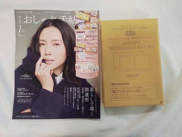 12月5日に発売された雑誌『大人のおしゃれ手帖』1月号増刊には特別付録として、スヌーピーの「365日の日めくりカレンダー」が付いてきます!