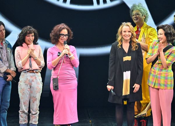 すべて見る現在、東京・SMBCグループミュージカルシアター JR東日本四季劇場[秋]でロングラン上演中のミュージカル『バック・トゥ・ザ・フューチャー』。2025年12月9日には、原作映画でロレイン・ベインズを演じたリー・トンプソンとジェニファー・パーカーを演じたクローディア・ウェルズが来場。ふたりは同日公演のカーテンコールに登壇し、挨拶を行った。