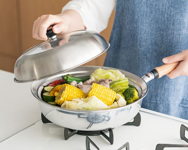 8位:フライパン用フタ付きステンレス蒸し器(税込4,389円)