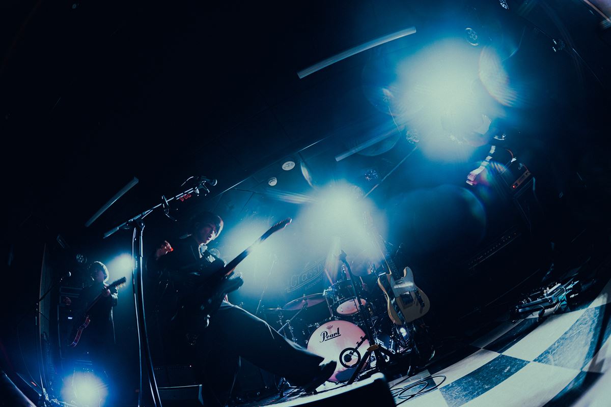 「Star Gazer」では、ポップさ溢れるメロディの中に、重たくドスの効いたハードコア的フレーズを交えてくるあたりがたまらない。演奏や展開の精巧さを感じつつ、ジャズ/エモ/パンクなど様々な音楽性を調和させた楽曲たちはどこまでも自由。リズム隊の重厚感とギターのカッティングの軽快さが抜群に融合した「Jean Paul」の気持ちよさを浴びたら、身体を揺らさざるを得ないし、「Rolling Star」はまるで高速メリーゴーラウンドのようで、鮮やかな照明の中でリズミカルに展開していく様子にワクワクしっぱなしだった。今回のライブでは、疾走感のある四つ打ちビートの新曲「Poinsettia」や未公開の新曲も披露し、自主企画を控えた彼らの更なる飛躍を期待させつつ、ラストは「Hierarchy of needs」でジェットコースターの如くパンキッシュに駆け抜けた。