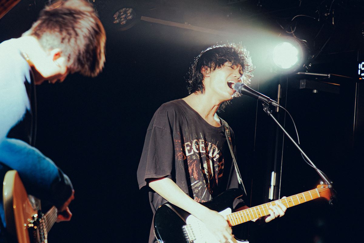 イベントのスタートを切ったのは、Pastel Tang Club。黒で統一された衣装でステージに登場した5人は、1曲目の「Lonely Girl」からブーストをかける。メロディの疾走感とギターのカッティングが気持ち良く、それでいて感情を曝け出すように絶唱するパートもあり、気持ち良さだけでは終わらせない。ストロボが視覚的にも攻撃性を増幅させる、音の粒が激流のように流れてきた「track jacket」では、スピード感も相まってオーディエンスの身体を揺らしていく。熱いパッションを感じるボーカルと、どこまでも自由なメロディワークが融合し、様々な表情を見せていくのが面白い。