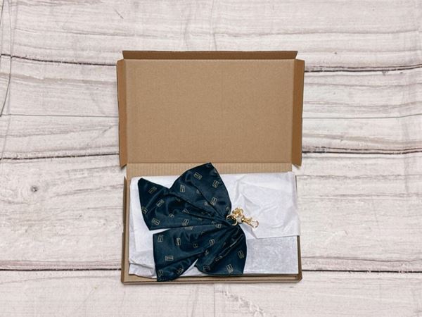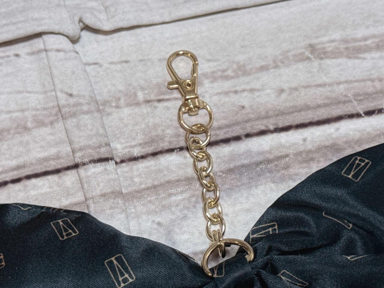 リボンの上部に、ゴールドのチェーンとキーホルダーがついており、取り外しも簡単です。