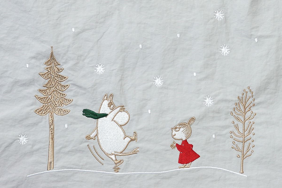 いずれも、雪の中で楽しく遊ぶムーミンとリトルミイの立体的な刺繍がとても素敵で、アイスグレーのカラーも冬コーデを彩ってくれそうです!