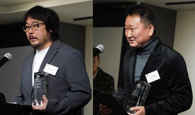 第1回日本映画装飾協会賞の授賞式の様子。左から「国宝」で装飾を担当した酒井拓磨、「新幹線大爆破」で装飾を担当した松下利秀