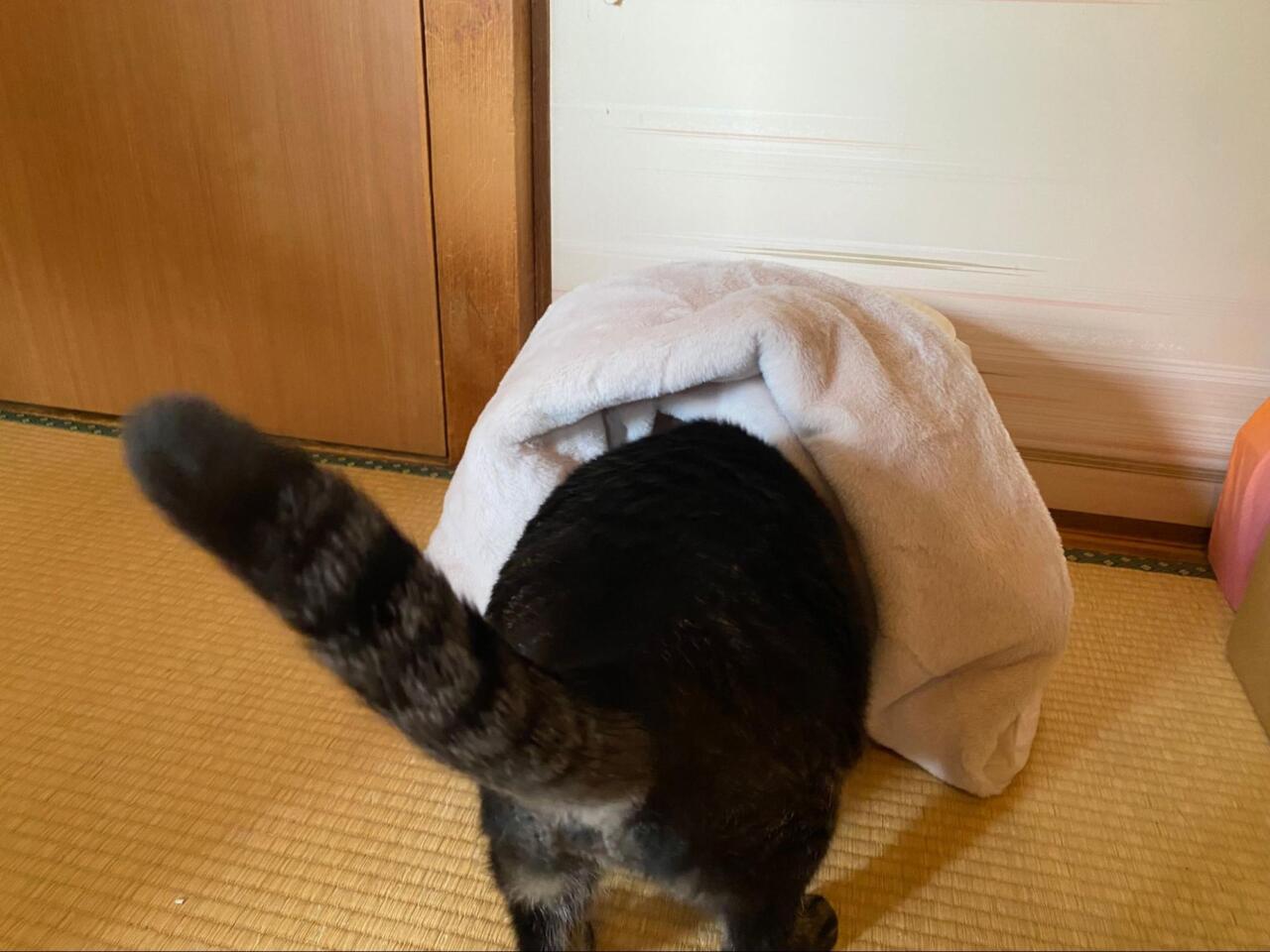 「3COINSの猫用こたつ」をうちのネコに3日間使ってもらった結果→こんなことになるとは…! 画像(/11)