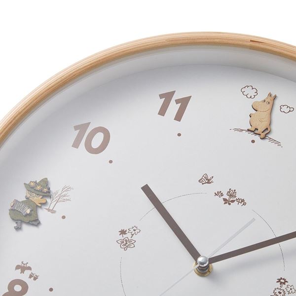 お部屋のインテリアになじむ、ナチュラルな雰囲気が魅力の「ウッドパーツ掛け時計『ムーミン』」。