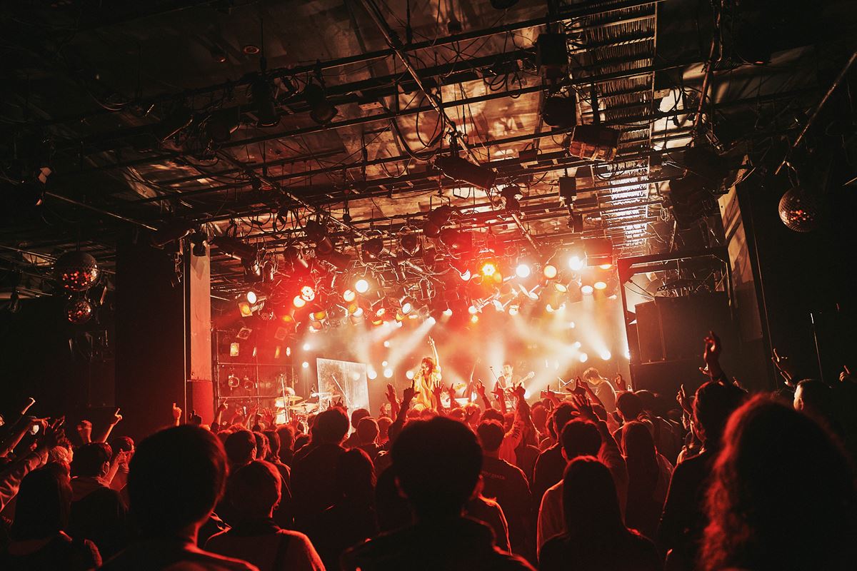 後半に差し掛かったところで披露された「メイデン」では、アグレッシブなバンドサウンドが印象的で、思春期の少女の危うさや焦燥感を表現しながらも軽やかにメロディアスに表現していく。「クズ男撃退サークル」では待ってましたという期待感をオーディエンスから感じながら、Aメロの可愛らしさからのその先の芯の強さをライブではさらに強く感じさせてくれて、《おのれ!愚かなる者たち》の歌詞にぐさりと胸を突く感情を覚えた。「ねぇねぇ先輩」では、バンドメンバーそれぞれを〇〇先輩と称えながら紹介していき、「ボーカルは十明先輩です」と自身もその枠に入れながら紹介していく様がなんとも微笑ましく、「革命」ではハンドクラップでさらなる盛り上がりを見せライブは終盤へ。