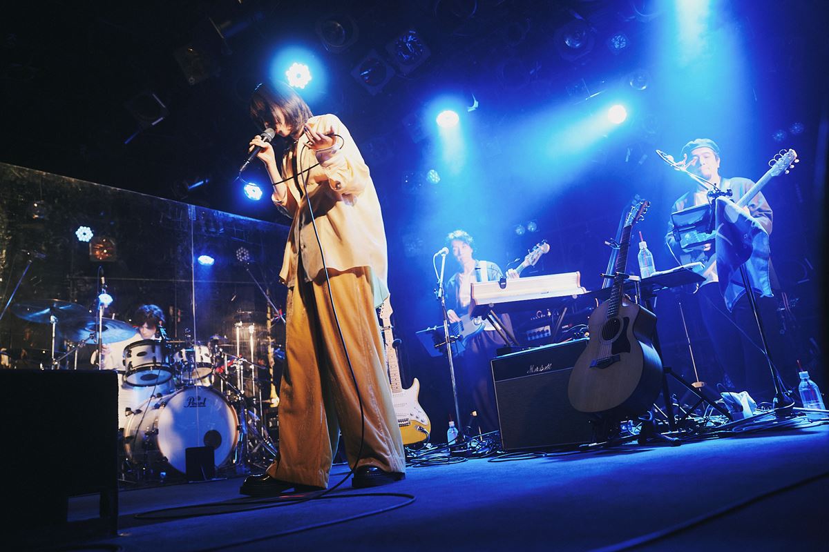 アコギを担ぎながらMCで語ったのは、次に披露される「ねばーえばーらんど」に繋がるエピソード。「友達が心の病になってしまったときに自分になにができるんだろうって。意味がなくてもやらなきゃいけない。少しでもなにかに繋がれば」と想いを吐露しながら、『1R+1』の最後に収録されている「ねばーえばーらんど」へ。まるで誰かの隣りで語りかけるような世界観。小さな部屋のワンルームで大切な誰かの想いを受けとめて紡ぐ言葉。誰かを想う気持ちに寄り添ったあたたかな空間がここにも存在していた。