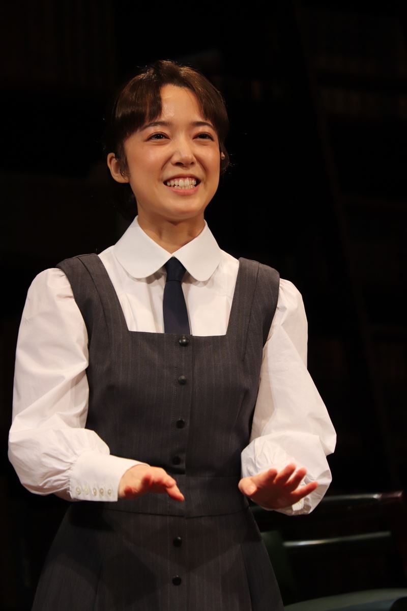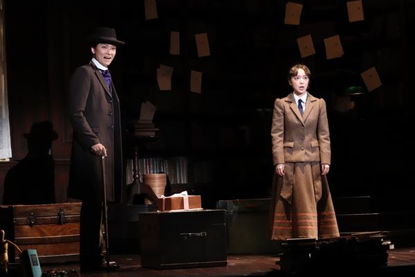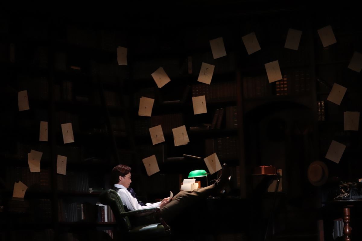 まさに本のページをめくっていくような気分になる、大事にじっくり味わいたいミュージカルだ。舞台面には重厚感あるウッディな床や壁、背の高い本棚に囲まれた書斎、アンティークなトランクケース。セットもクラシカルでぬくもりがあり、穏やかな空気を運んでくれる。その中で紡がれる、ジルーシャとジャーヴィスの心の交流。手紙はジルーシャからジャーヴィスへの一方通行だが、手紙を読みながら驚いたり笑ったり戸惑ったりするジャーヴィスの表情が、原作小説にはない「二人の物語」といったふくよかさを生み出すのは、舞台版ならではの面白さだ。今期の井上ジャーヴィスは、「自分はあなたに関心を抱かないし、自分のことも詮索しないよう」という無機質なメッセージをジルーシャに伝えておきながらも、最初から面白がっているような表情を隠さず、大人の余裕も感じさせる。その彼がどんどんジルーシャに惹かれ、時に子どものようなふるまいもしてしまうところがなんともかわいらしく、“大人の不器用な初恋”といったフレッシュな感情を瑞々しく見せている。