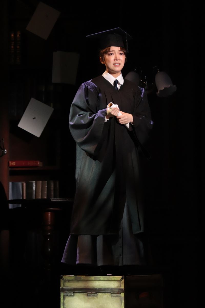 上白石の演じるジルーシャは聡明さはあるがところどころ幼さも残る、純朴な少女。想像力の翼を広げているかのようなキラキラした大きな目が魅力的で、ジャーヴィスだけでなく誰もが愛さずにはいられないジルーシャだ。同時に、想像力は相手を思いやる優しさに直結するのだという、人間的大きさも伝わってくる。井上×坂本コンビと比べると“年の差カップル”だが、年上の井上ジャーヴィスを包み込むような包容力も感じさせる。また上白石ジルーシャはダディへの感謝(と好奇心)を敬意をもって表現しているのだが、不思議と、過去に観た時より甘酸っぱく、恋の要素を強く感じたのが面白い。中でも卒業式に招待したダディが現れなかったジルーシャの失望は、失恋したかのような切なさでやるせなかった。