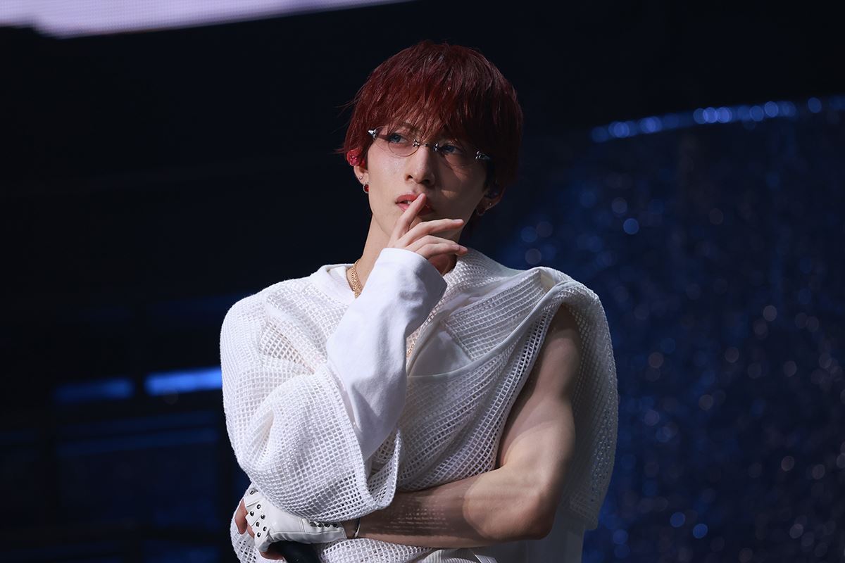 個性あふれる挨拶を終えたところで、4曲目『CHASER』へ。真っ暗な中、イントロが流れただけでファンからの歓声が会場を包み込んだのが印象的だったこの曲では、2番のAメロで高身長ゆえの長い脚をふんだんに活かし、前に出てくる中川の姿が印象的。本田の力強いラップからスタートし、佐野の繊細な歌声にバトンパスする『Supernova』を続けて披露した。