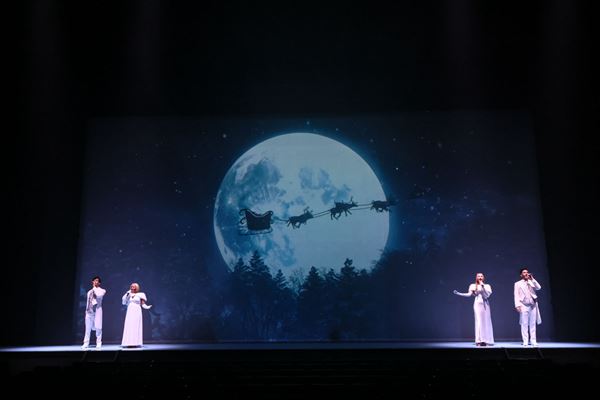 その後に披露される「きよしこの夜」(Silent Night)、「恋人たちのクリスマス」(All I Want for Christmas is You)、「サンタが街にやってくる」(Santa Claus is Coming to Town)といった定番曲で構成された2つのメドレーコーナーも圧巻。レビューを彩るクリスマスソングは、子どもたちも楽しめる定番ソングや、ゴスペルのゴージャスなソング、誰もが知るポップスなど30曲以上。愛と夢に溢れたひと時は、素敵な思い出になることを願いたい。