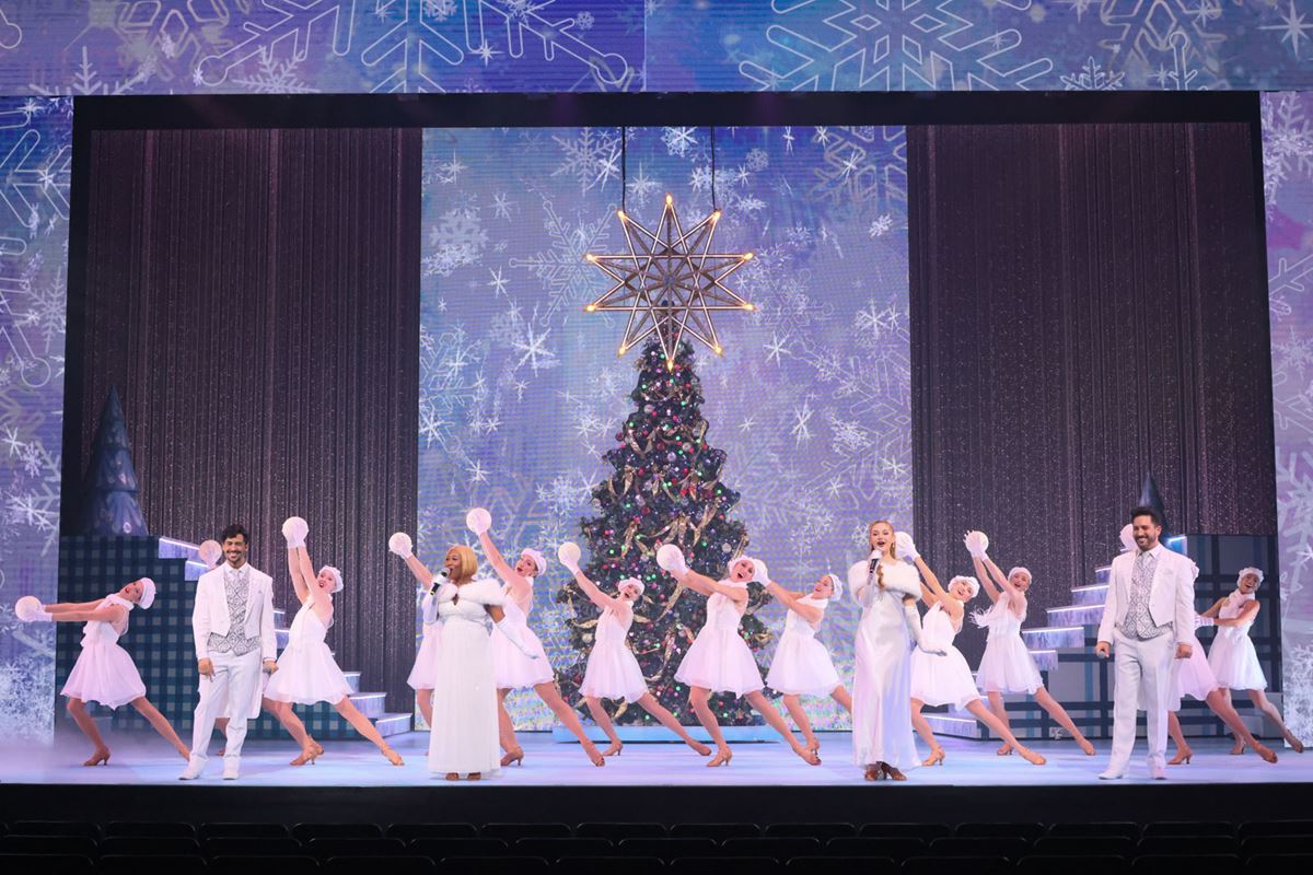ステージ上に広がるのは、雪と氷がきらめく夜の銀世界。「レット・イット・スノー」(Let It Snow)で幻想的に幕を開けたレビューは、そのまま「ホリーは愉快なクリスマス」(Holly Jolly Christmas)、「ジングル・ベル」(Jingle Bells)と、誰もが知るクリスマスソングを次々と披露していき、早くも会場全体がクリスマス気分に包まれる。