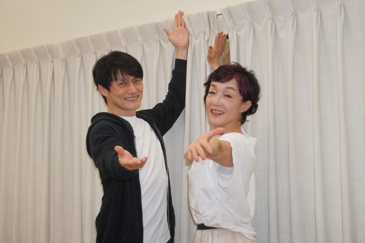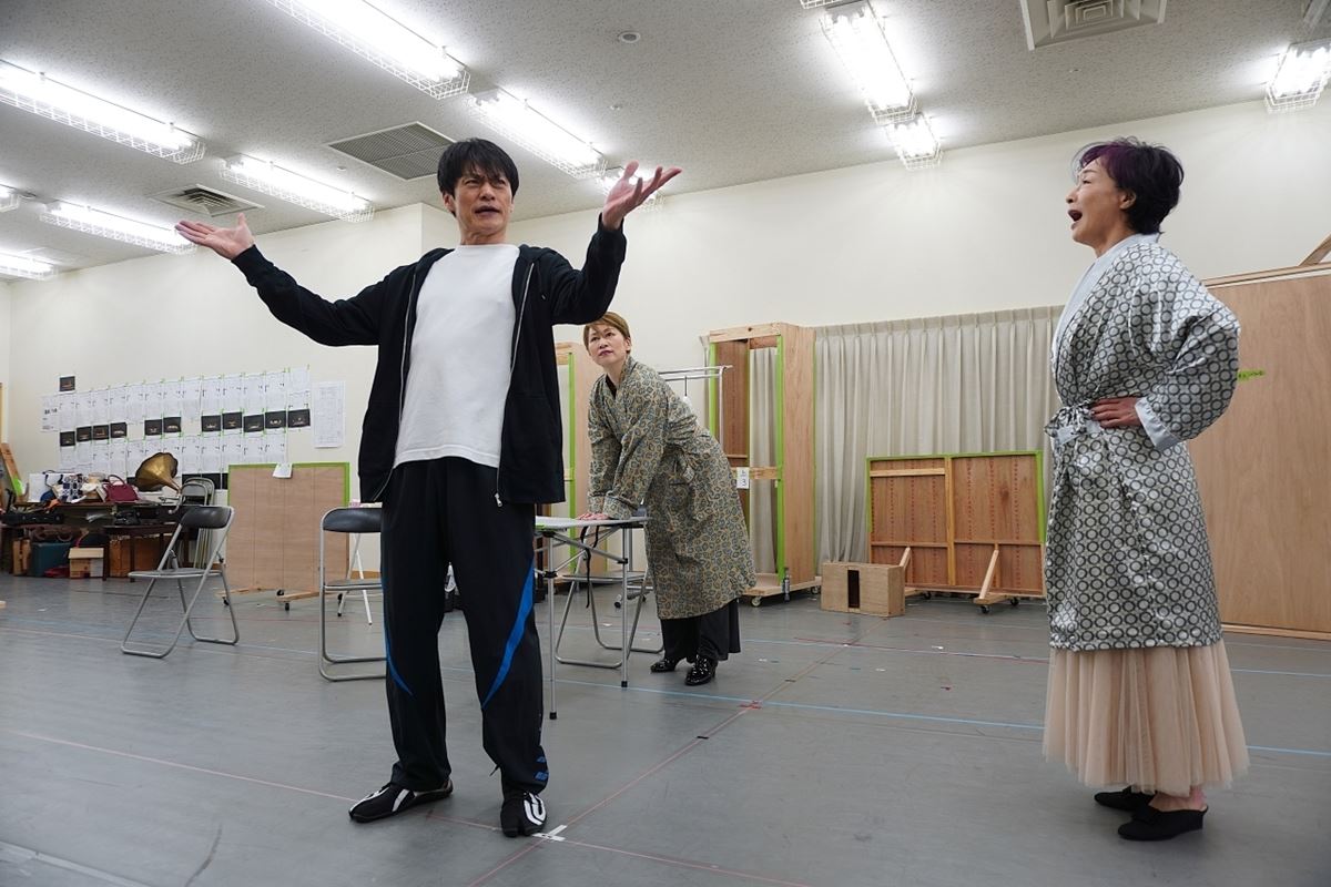 『わが歌ブギウギ-笠置シヅ子物語-』公開稽古より、右から笠置シヅ子役のキムラ緑子と服部良一役の松村雄基