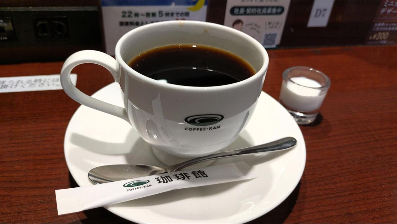 ドリンクは、アメリカンやアイスを含むコーヒーが差額なしで4種類。さらに紅茶やジュースも選べます。私は深煎りの「珈琲館ブレンド」をチョイス。コクの奥にかすかな甘みが広がるのを感じました。