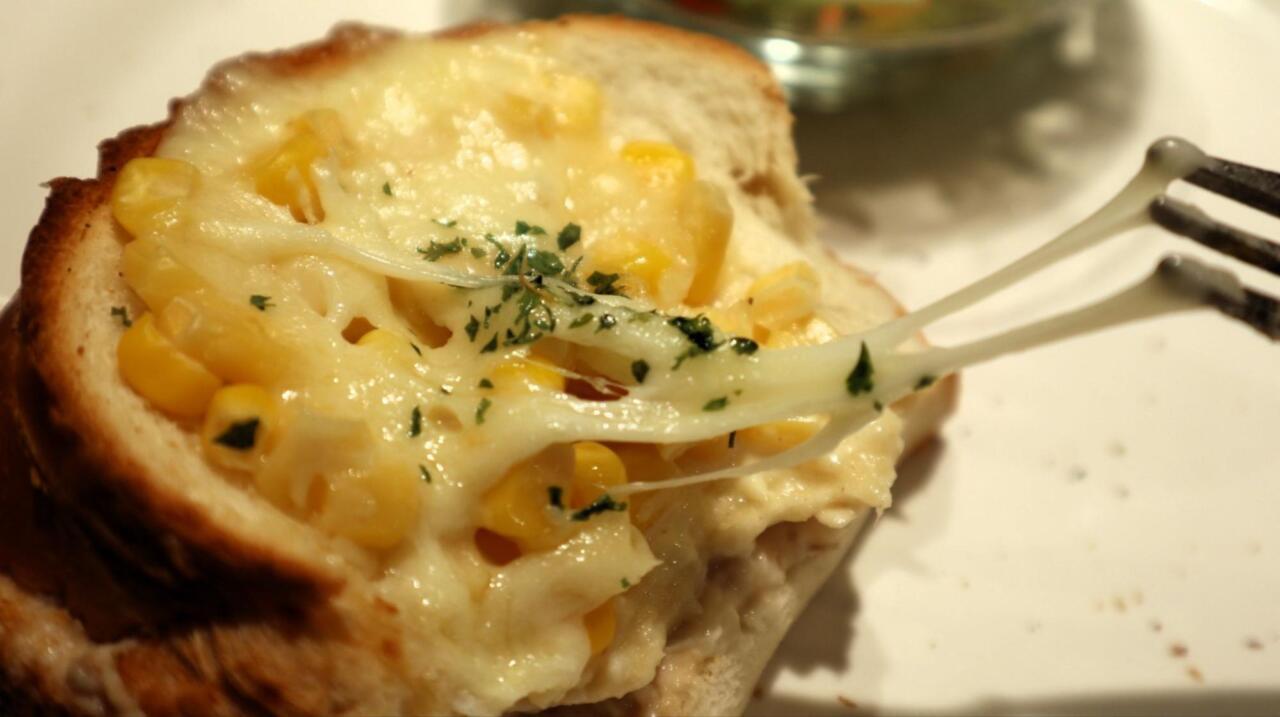 【珈琲館 ツナコーントーストサンド】よくのびるチーズの塩味と、ぷちぷちコーンの一粒ひと粒からあふれる甘さのバランスがやみつきになります