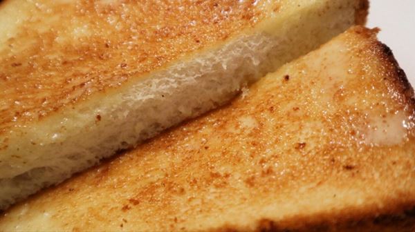 運ばれてきたトーストは全面が香ばしく、バターが均一に染みてツヤのある仕上がり。見た目から完成度が高い一枚です。