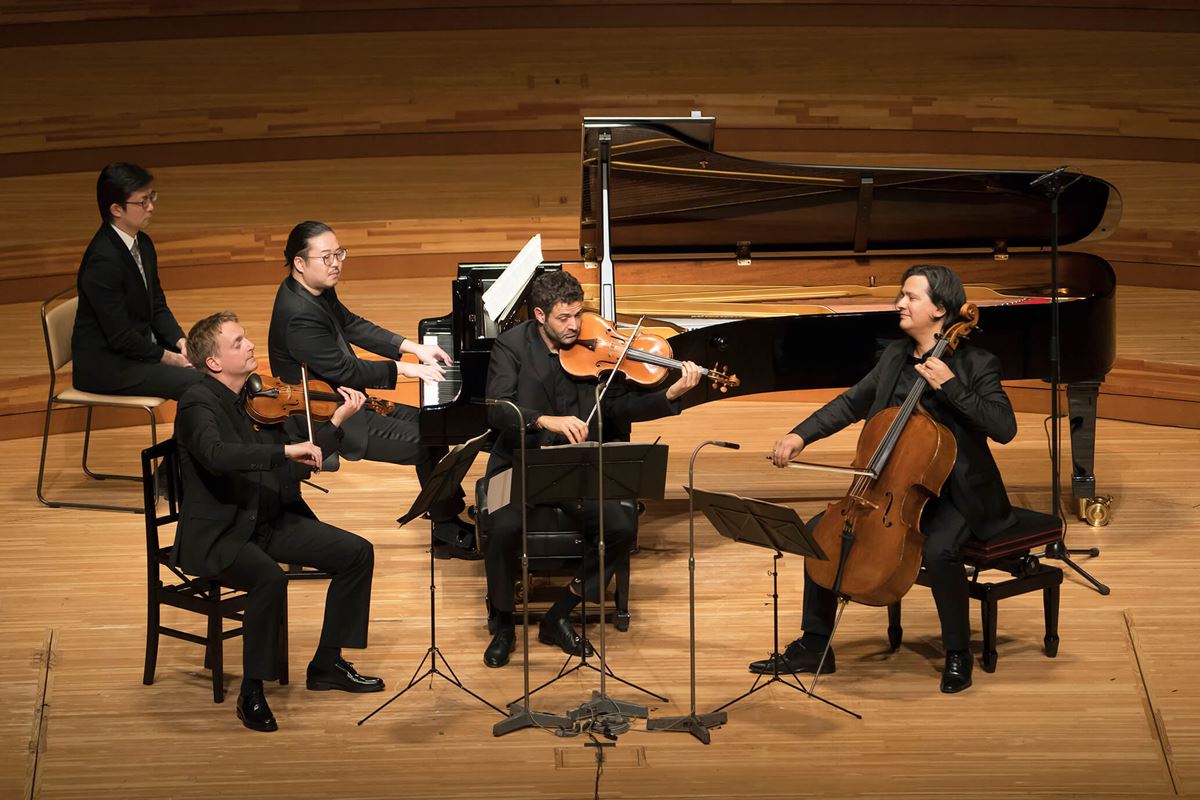 そして、最後は、シューベルトのピアノ五重奏曲「ます」。第1楽章のヴァイオリンは、自然で、歌い過ぎたりしない。反田のピアノは、弦楽器とコミュニケーションを図るが、ソロ的な箇所では華やかさが際立つ。第2楽章はとても親密なアンサンブル。ハッとするような弱音表現も聴けた。第4楽章は、歌曲「ます」の旋律が主題となった、有名な変奏曲。冒頭、ごく自然に弦楽器で主題が奏でられ、ピアノが入ると華やかさを増す。そして第5楽章で楽しく結ばれた。全体を通して、さすがに伝統あるヨーロッパの室内楽アンサンブルだという印象を受けた。ヴァイオリンは渋めで、ヴィオラはかなりの名手、チェロは温かな音を持ち、味わいのある表現。コントラバスは抜群のセンスでアンサンブルを支える。反田のピアノは作品にふさわしい流麗さがあり、ときにキラキラとした音を聴かせてくれた。5人の音を通しての語らい、まさに室内の音楽(=室内楽)を満喫した。
