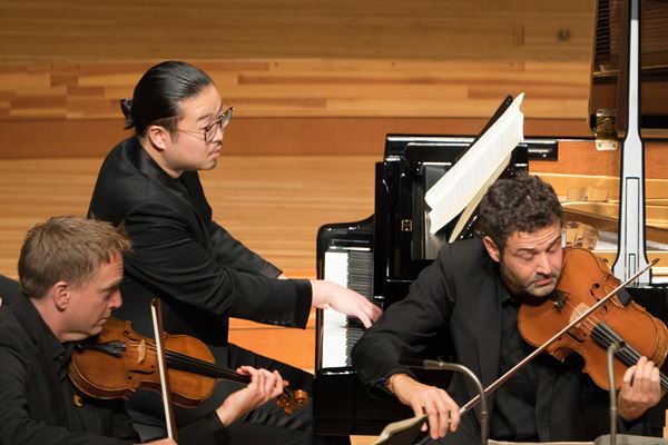 ブラームスのピアノ四重奏曲第1番は、反田の丁寧なピアノ・ソロで始まる。そして弦楽器のアンサンブルも力まず丁寧である。全員が相当な腕利きであるが、ソリスト的な誇示はない。奏者間のコミュニケーションが密。反田は落ち着いた音で、ブラームスの重みや深みを表現した。第2楽章のヴァイオリンの表情はさり気なく、ピアノも突出することなく弦楽器と溶け合う。第3楽章冒頭ではチェロが朗々と歌い、ヴァイオリンがそれに乗る。中間部ではピアノが洗練された音色。4つの楽器が織りなす豊かな音楽が、美しい余韻を残した。第4楽章は、一転して、ノリの良い、ロマ風のダンス。速めのテンポが取られ、ピアノが妙技を披露。そして哀愁の旋律は味わい深く奏でられる。最後は勢いよく締め括られた。