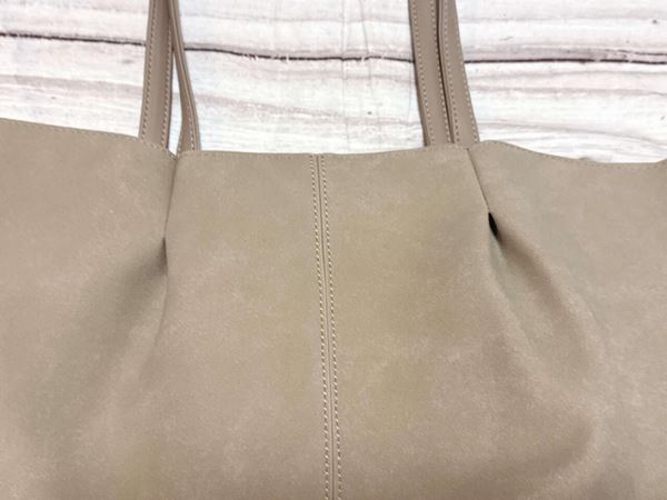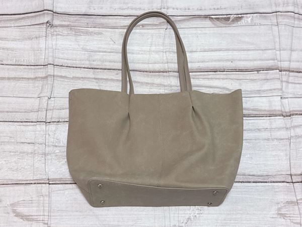 シンプルなスウェード調のトートバッグですが、ハンドルの付け根にタックが入っており、デザイン性があっておしゃれ!