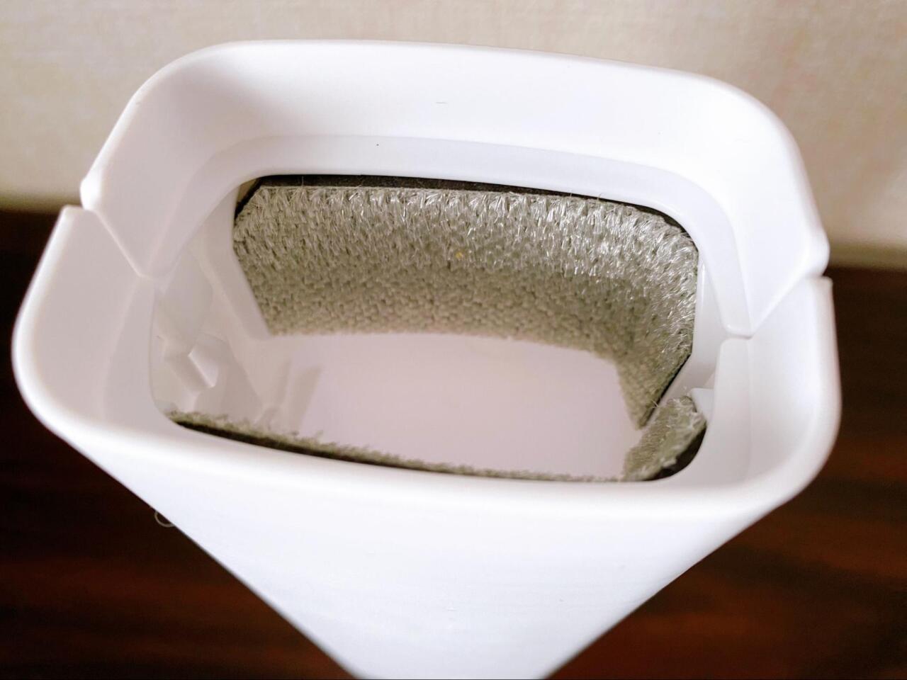 普通のハンディモップだと使うたびにホコリまみれになって結局洗わなきゃいけないのがネックですが、このアイテムなら、モップを抜き差しするだけでホコリが徐々にまとまってケースの底に落ちていくんです!