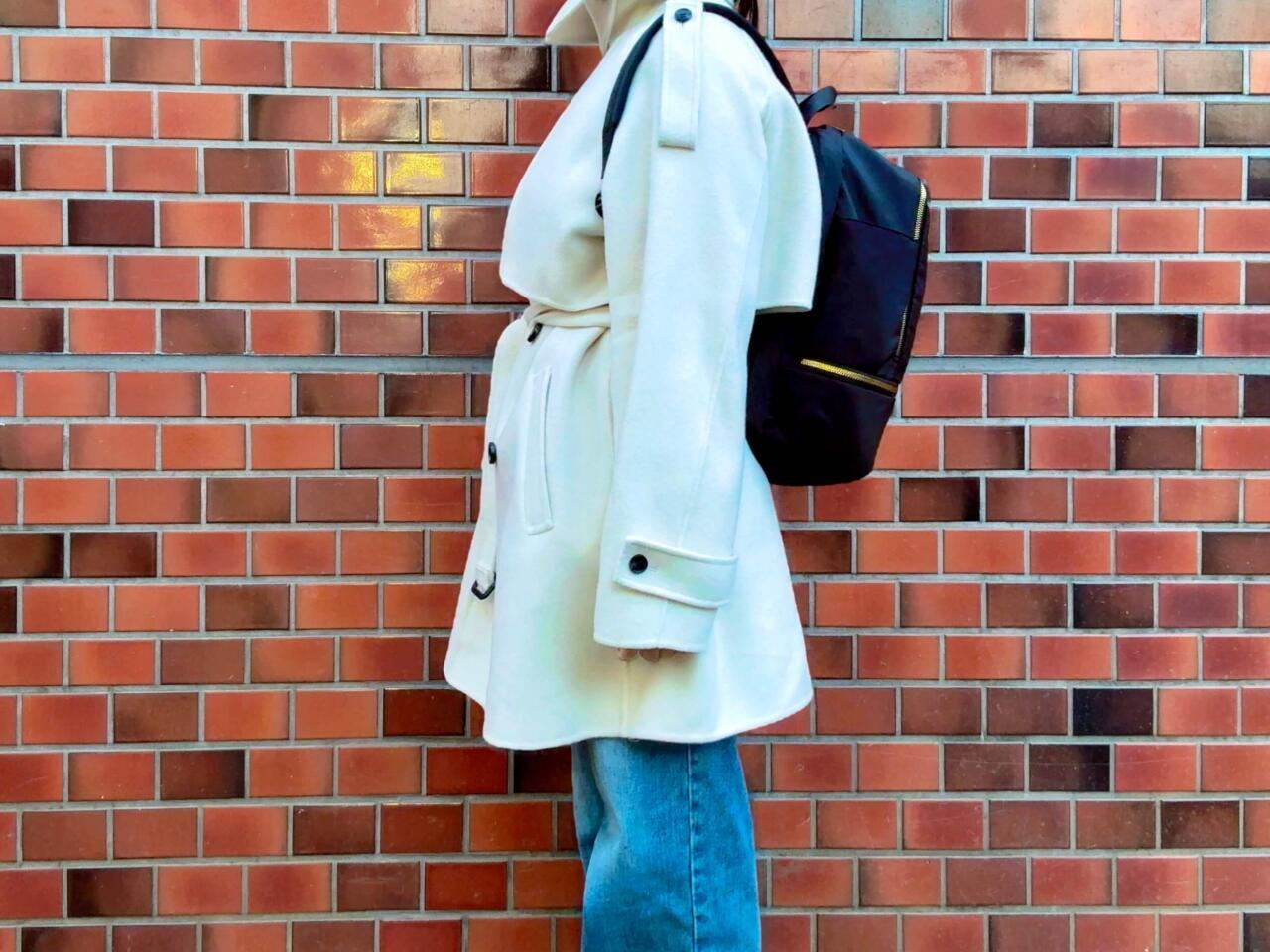 サイズは(約)縦38×横24×マチ13.5cm。比較的マチが小さいすっきりとした美フォルムです。また、生地がやわらかいため、背負った際のシルエットもかっちりしすぎないところも◎。