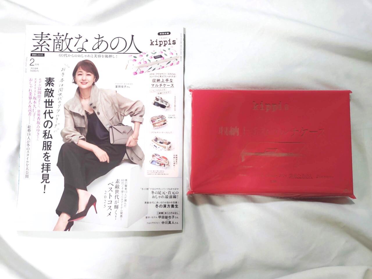 雑誌『素敵なあの人』2026年2月号の付録は、北欧テキスタイルブランドkippis(キッピス)の「マルチケース」です。