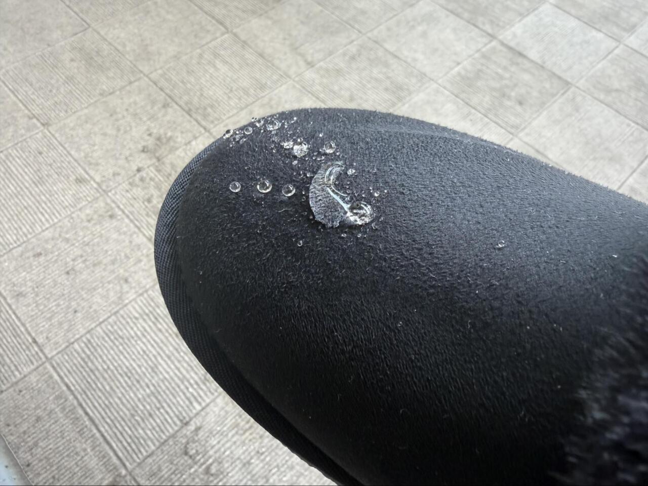 なお、表面には撥水加工を施したスウェード調素材を使用しているので、多少水滴がかかっても安心して使えますよ。(※フェイクファー部分は撥水加工なし)