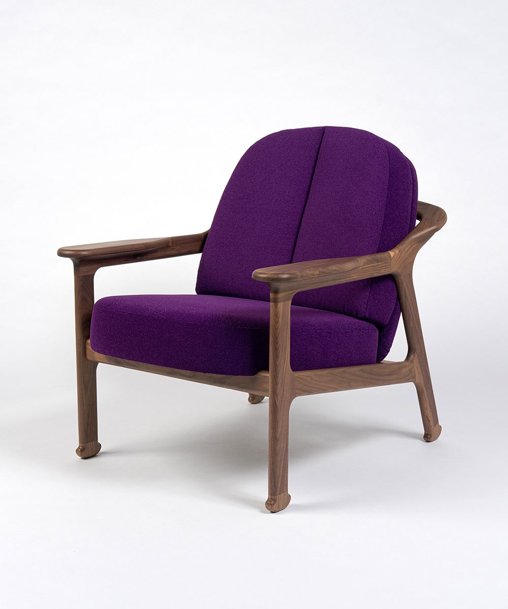 劇場内で長年保管され、客席で使用されていたものと同様のモケット生地は、9アイテムに活用。客席での座り心地をラグジュアリーに再構築したコンフォートチェアは、帝劇客席の象徴的な背もたれのセンターラインを踏襲し、実際に使用されていた席番プレートを装着。舞台を見つめてきた記憶を宿す、上質な座り心地の一脚となった。その他、ポーチやブックカバーなどの小物アイテムにも客席モケット生地が活用されている。