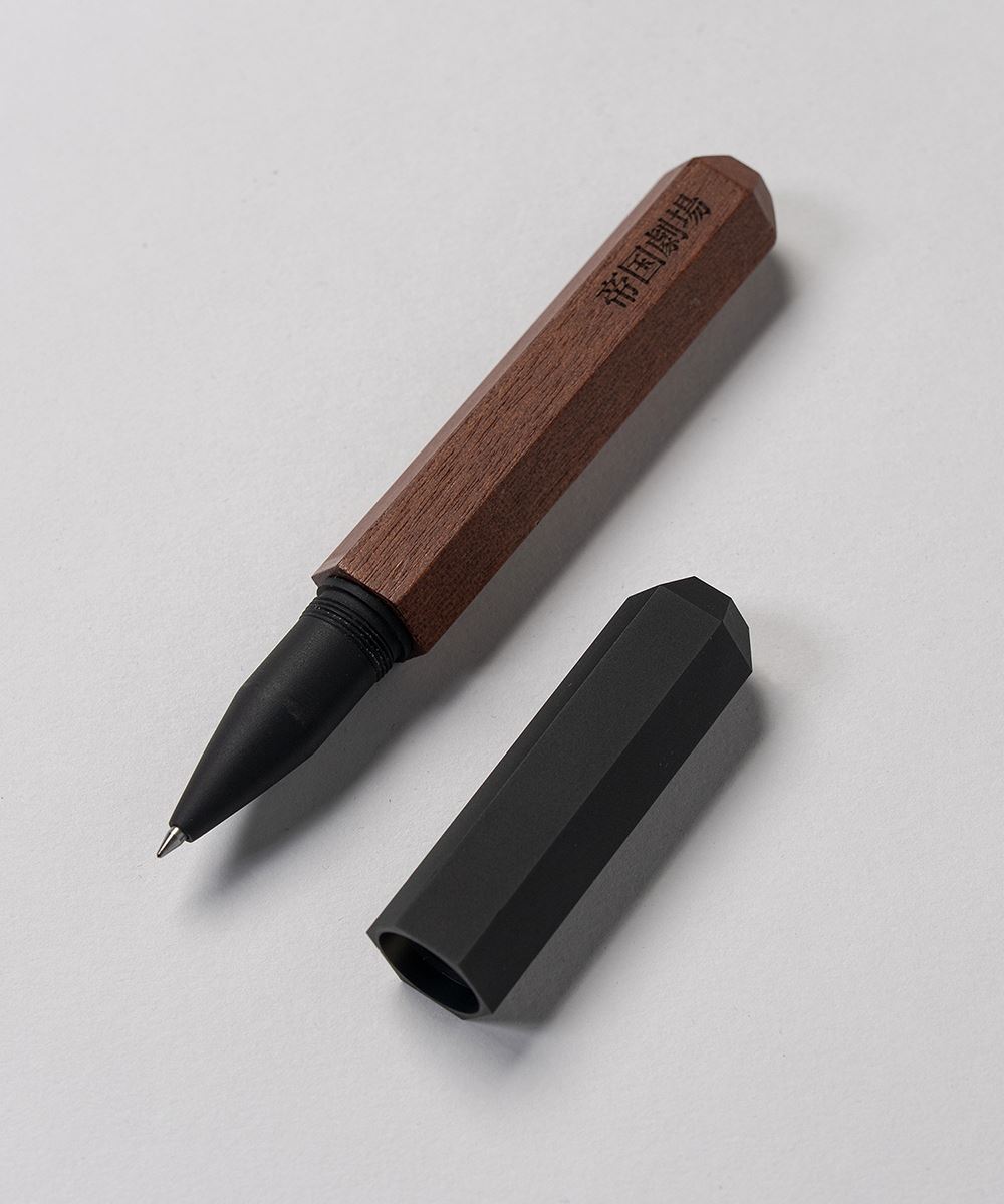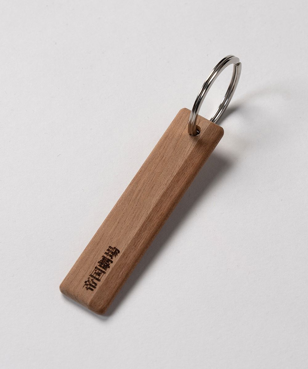 1階・2階の上手・下手ロビーを照らしていた筒型の照明は、3サイズ展開のアッパーライトにリメイク。ロビーなどの手摺りの木からは、ベンチ、着到板キーホルダー、ボールペンの3アイテムが制作された。
