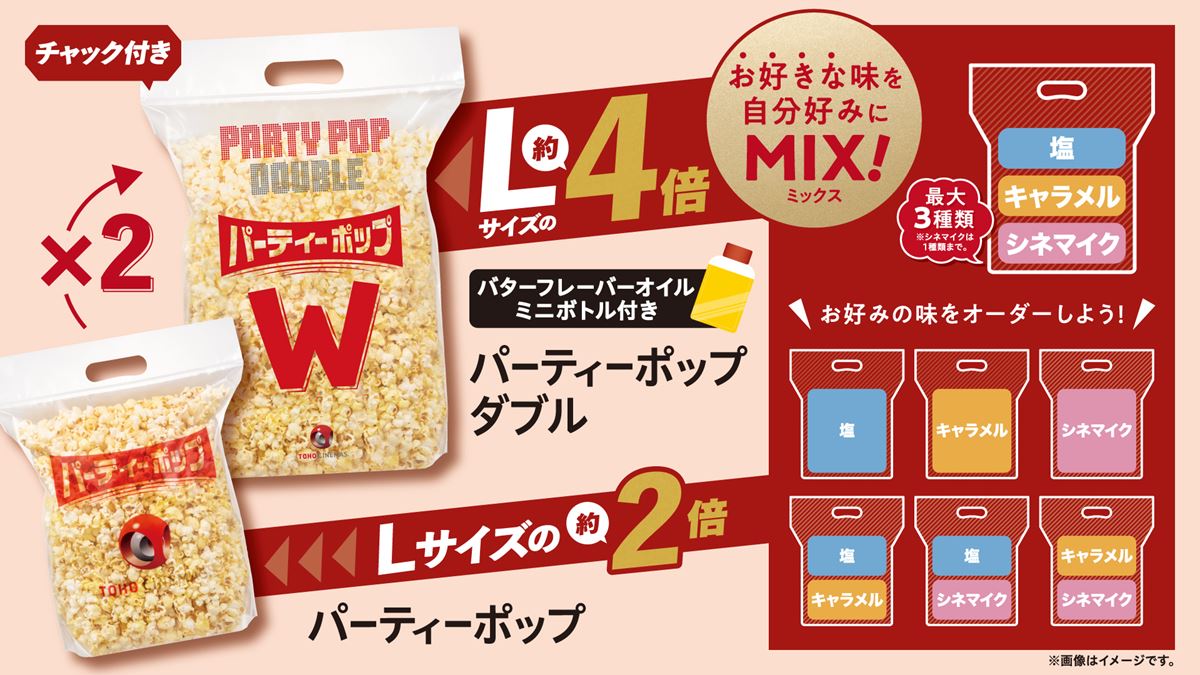 映画館の味を自宅で! TOHOシネマズがポップコーンをUber Eatsで販売スタート 映画 ニュース ぴあ 26/1/8(木) 11:40 TOHOシネマズが、Uber Eatsを通じてポップコーンの販売を開始した。 対象劇場は新宿・渋谷・なんばの3劇場で、順次拡大予定。映画館の味を自宅で味わうことができる。 ・販売開始日:2026年1月5日 ・対象劇場:新宿、渋谷、なんば(順次拡大予定) ・販売方法:Uber Eatsにて注文可能 ・対象メニュー: パーティーポップ 1,350円(税込) パーティーポップダブル 2,560円(税込) ※商品代金とは別に、「配達手数料」および「サービス料」が発生します。 次のページ フォトギャラリー(2件) すべて見る 次のページ