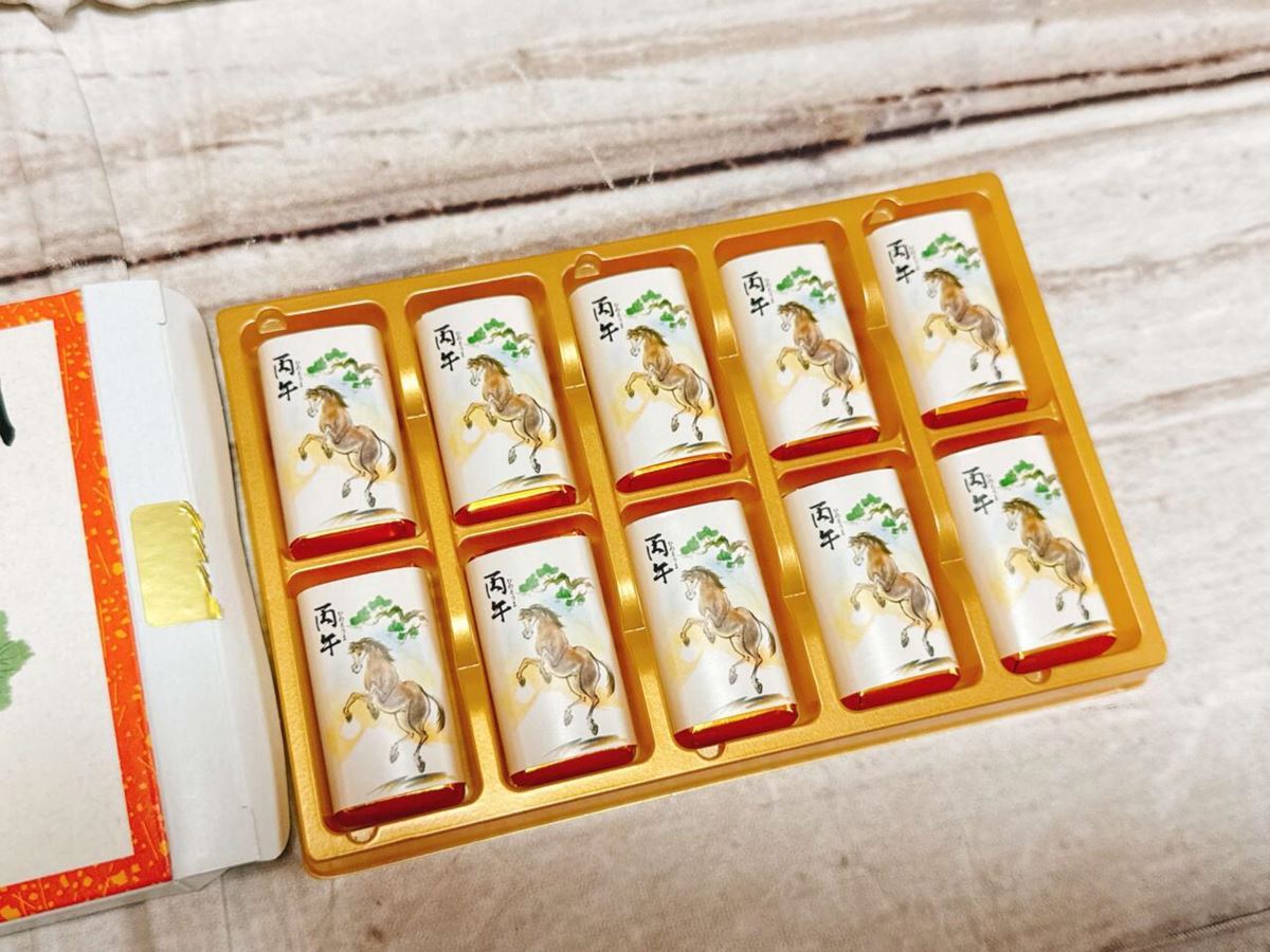 2026年の干支の午がデザインされた個包装のチョコレート。