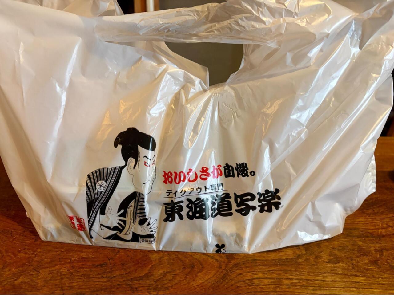 【東海道写楽】袋も割り箸のカバーもこの写楽の有名な役者絵がプリントされています