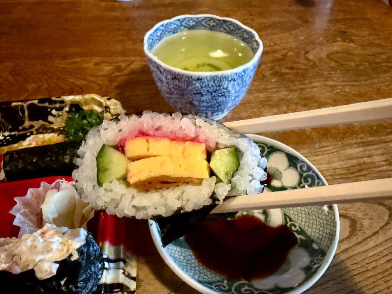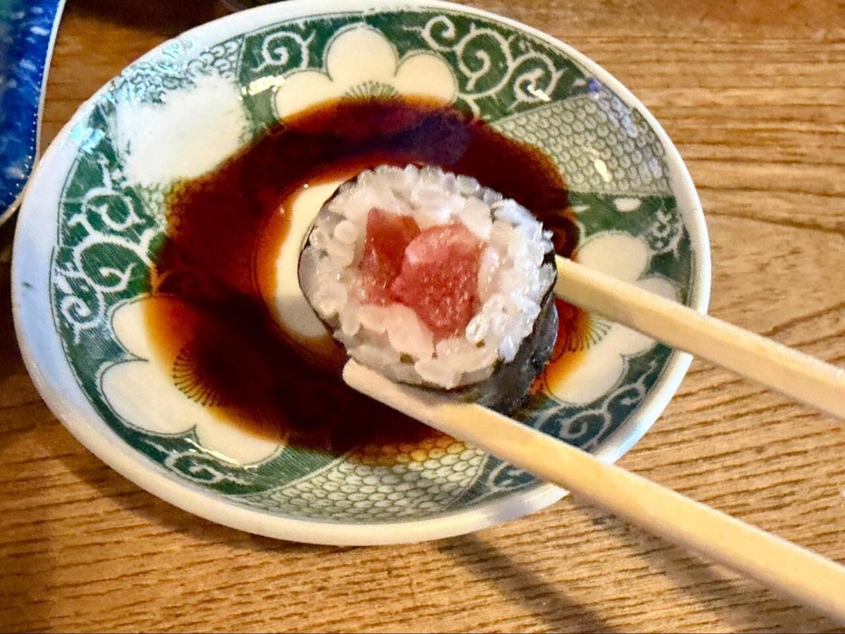 鉄火巻はシャリとマグロの割合が赤身とはまた異なり、分厚く食べ応えのある海苔も合わさってまた違った美味しさを楽しめます。