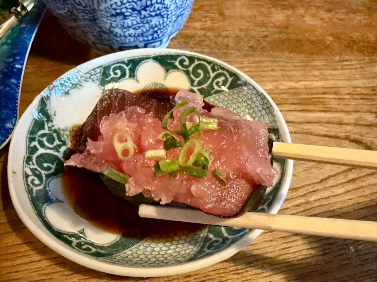 続いてネギトロをパクリと食べると、鮪の旨みとコクをしっかり感じ、口の中でふわりとなめらかにほどけてくれました。ネギトロの刻み具合も絶妙で、食感にはわずかな粒感があり、鮮度の良い鮪の歯ごたえを楽しめます。