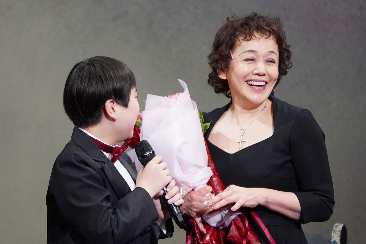 大竹とピアフの出会いは、20歳の頃に舞台で共演した故・十八代目中村勘三郎さんから、ピアフの評伝本を勧められたことがきっかけ。この日のカーテンコールには、勘三郎さんの孫にあたる、六代目中村勘九郎の次男・二代目中村長三郎がサプライズで駆けつけ「こんな大変なお芝居を200回も続けて、すごいと思いました。これから1000回目指して頑張ってください」と伝え、花束を贈った。