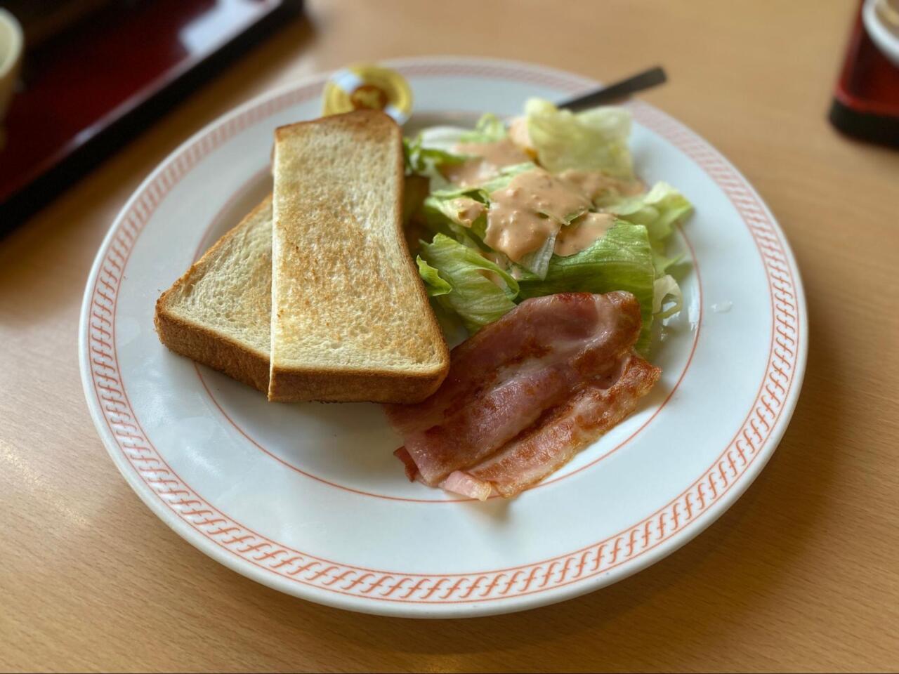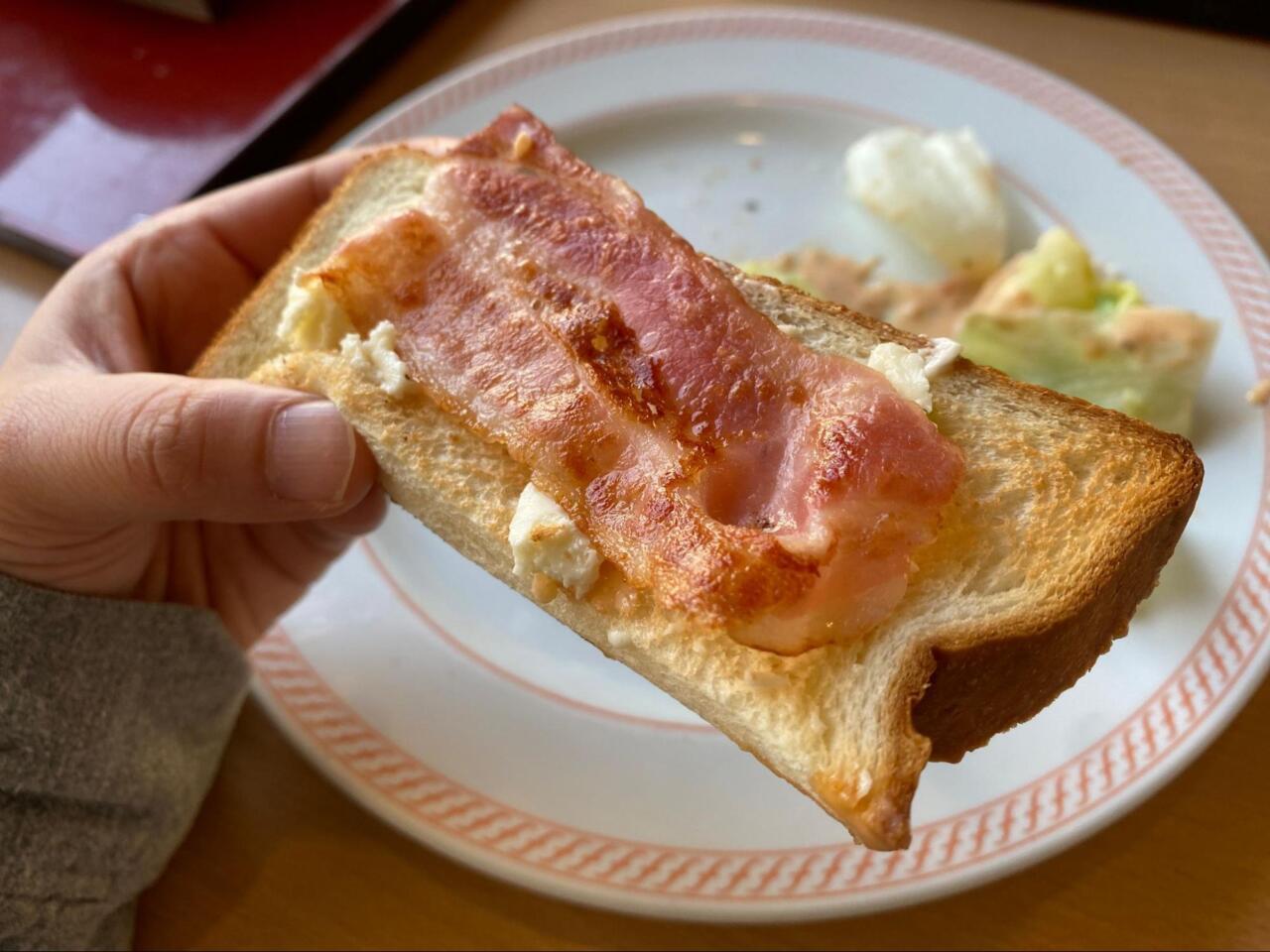 最後は、驚きの328円(税込)という価格のベーコンモーニング。トースト・ブールパン・ライスから主食が選べます。今回はトーストをチョイス。