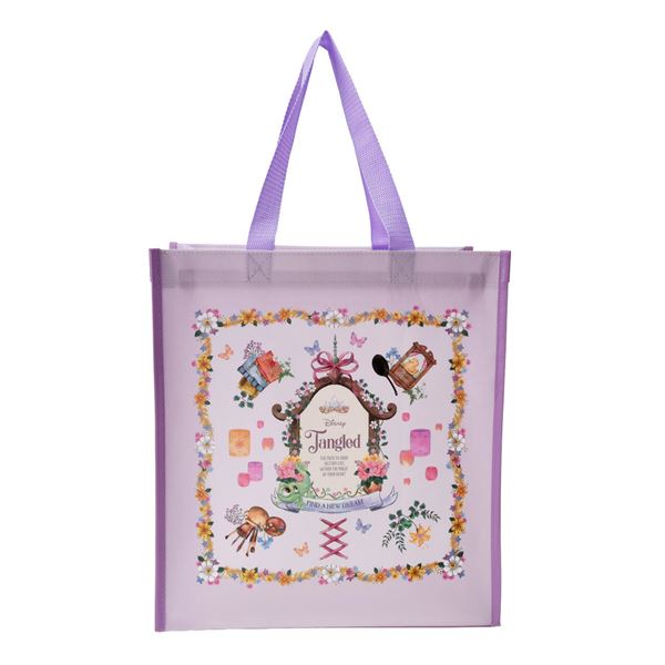 ドレスやランタン、フライパンなど、ラプンツェルのモチーフが表現されたスカーフは、首元に巻いたりバッグの開け口にかけて目隠しとして使ったりと便利に使えるグッズ。