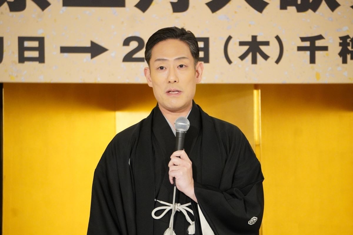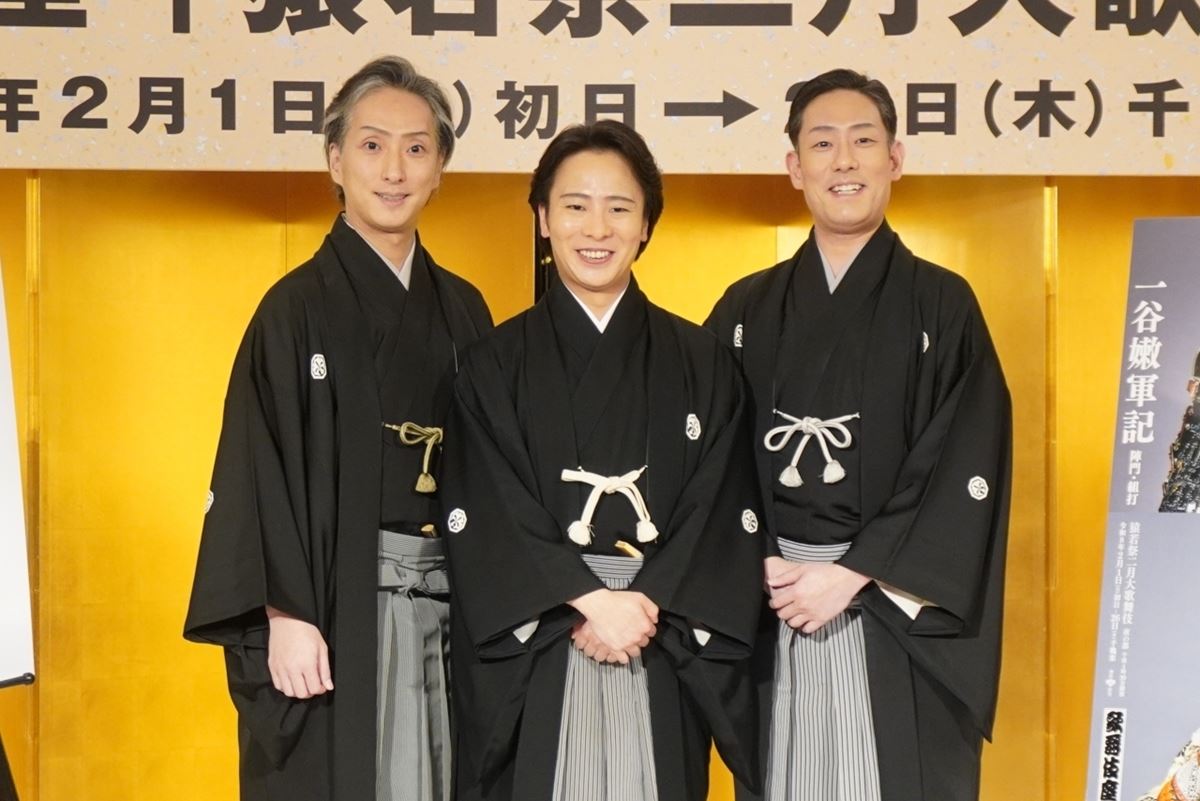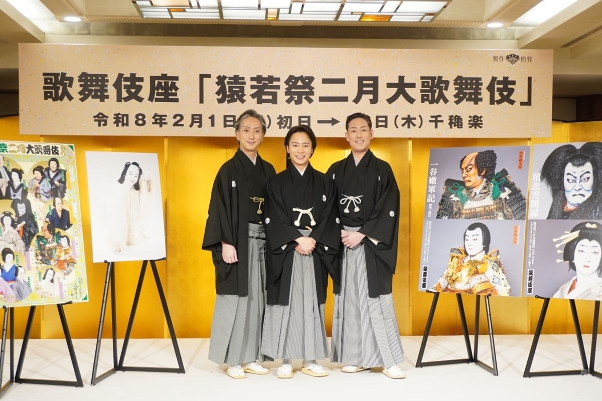 東京・歌舞伎座で開催される、令和8年2月歌舞伎座「猿若祭二月大歌舞伎」(昼夜二部制)の記者会見が1月13日、都内で行われ、中村勘九郎、中村七之助、同公演にて初代中村舞鶴を襲名し、幹部昇進が決定した中村鶴松が出席。意気込みを語った。