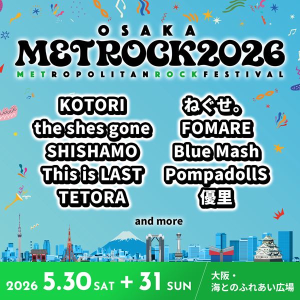 春の野外ロックフェス『METROCK2026』第1弾出演アーティスト発表 SHISHAMO、優里は両会場に出演