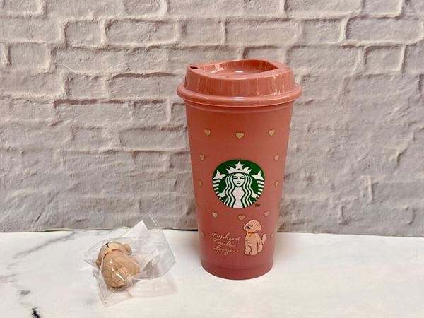 スタバの新作、ミルクチョコレート×ゴールドハートのリユーザブルカップは、温かいドリンクを注げばホワイトチョコレートカラーに変身!もふもふのトイプードルのイラストプリントもとってもキュートです。