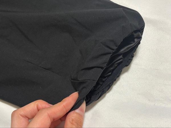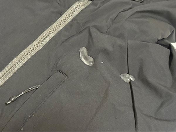 実際に水を垂らして検証してみると、水滴がコロコロと玉になって転がり、生地に染み込む様子はなし!裏側まで水が浸透することもなく、雨や雪の日でも気兼ねなく着られそうだと感じました◎