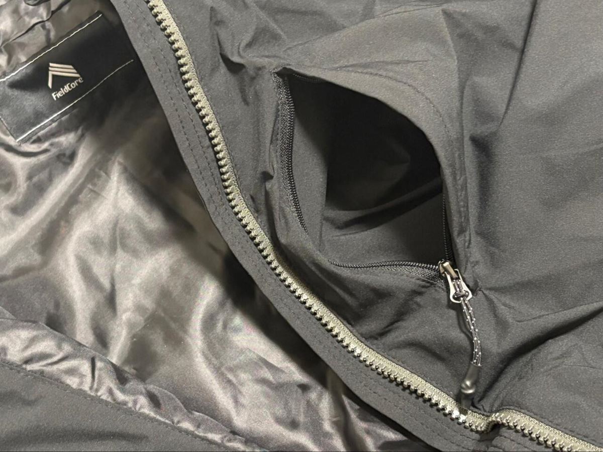 【ワークマン レディース撥水パデットロングフーディ】両サイドだけでなく胸ポケットも付いています◎