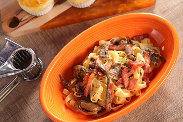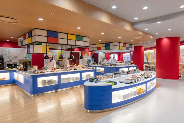 ライブキッチンでは、「国産牛肉の鉄板焼き」や「にぎり寿司」、さらに香り豊かな「ポルチーニのクリームソース」をはじめとした日替わりパスタが提供。