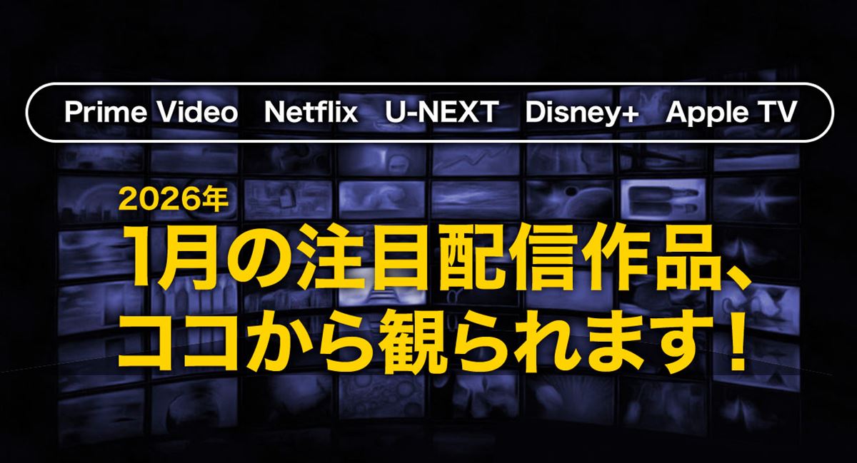 Prime Video、Netflix、U-NEXT、Disney+、Apple TVで配信される作品をオリジナル作品から、新作、新作の関連作などまとめてチェックできるコーナーがスタート! 今回は1月の注目作をご紹介します!