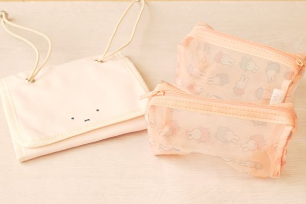 ポーチはミッフィーの総柄で、メッシュ部分にさまざまなミッフィーがプリントされています。